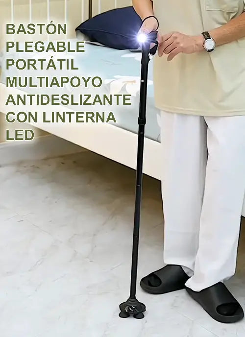 Con tu nuevo bastón plegable con apoyo múltiple antideslizante y linterna led, tendrás la seguridad que necesitas para tus desplazamientos y tu movilidad con confianza.