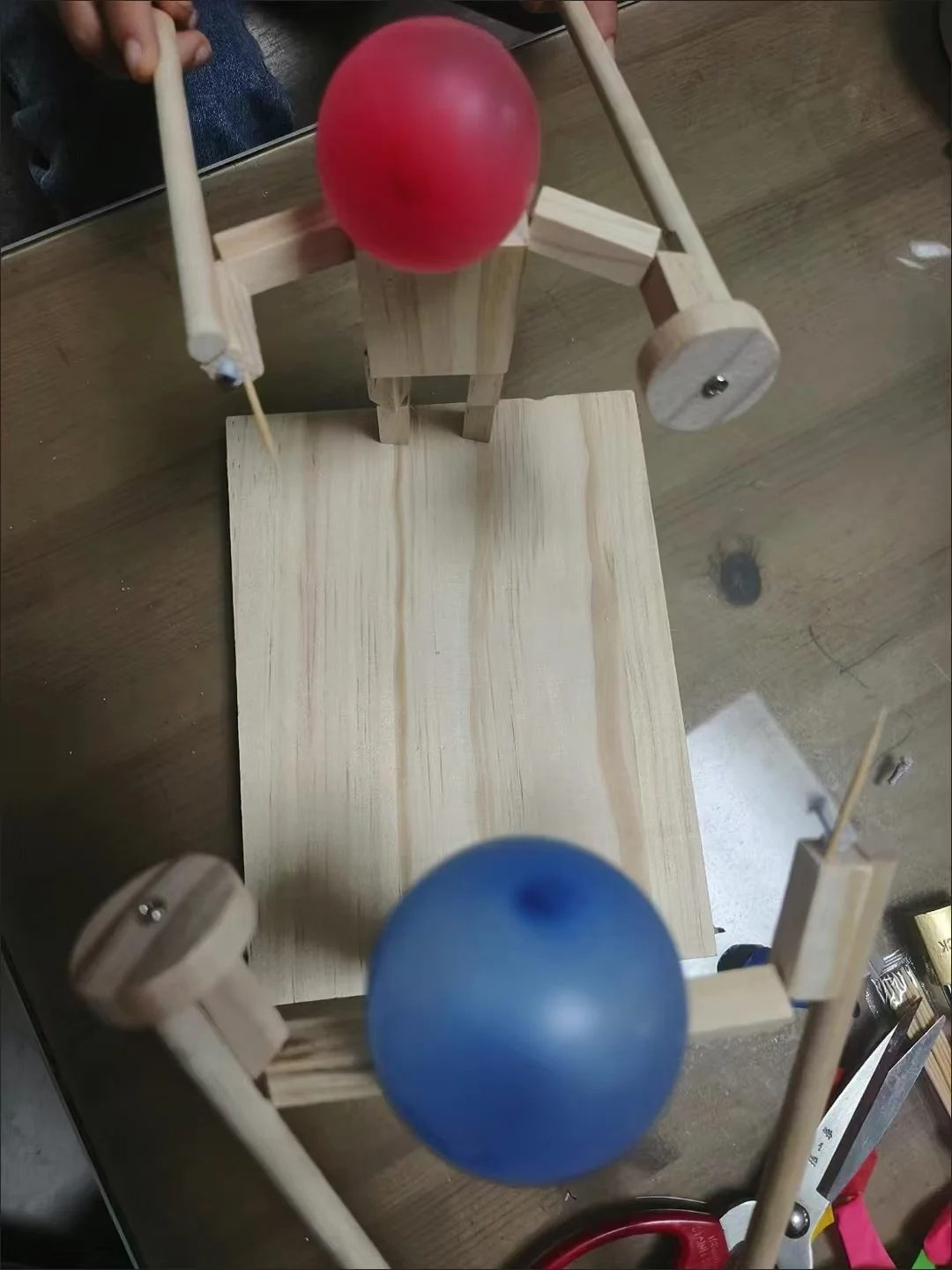 Desafía a un amigo a un combate de globos con este divertido juego de lucha de hombrecitos de madera.