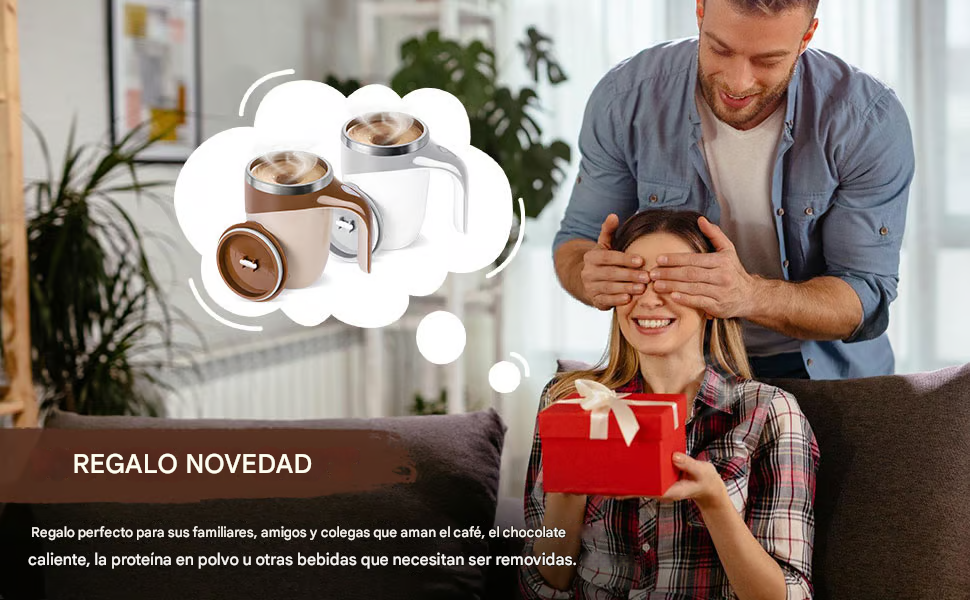 La taza con agitación automática puede mezclar bebidas líquidas y en polvo de manera uniforme. Es muy adecuada para café en polvo, té, chocolate en polvo, leche, batidos de proteínas, limonada y muchas otras bebidas.