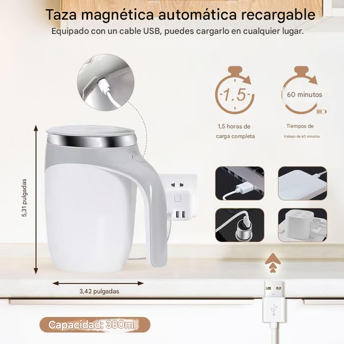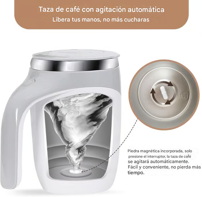 x1 Taza mezcladora magnética automática color blanco o café.